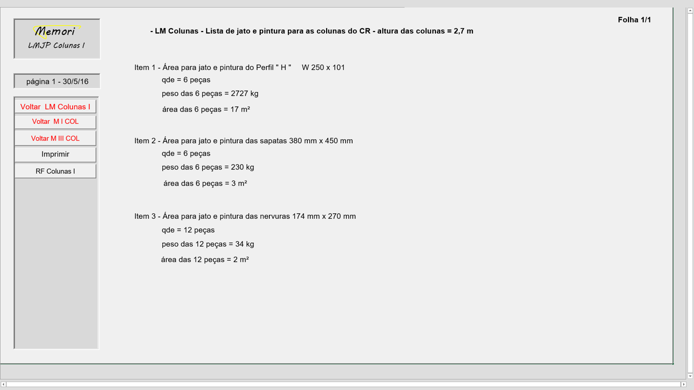 – Relatório com a área (m²) e peso (kg) para o jateamento e pintura.
